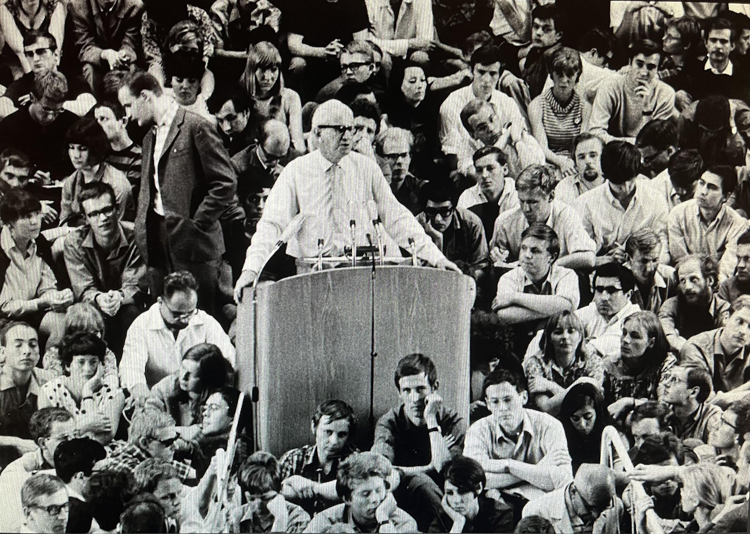 Marcuse giving a lecture in Berlin, 1967. Photograph Source: Isaactrius – CC BY-SA 4.0
