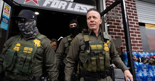 Hours after the chase in Kenner, Bovino and his team held a photo op for press. As they walked out of a store and back to their vehicles, video journalist Ford Fischer asked Bovino if the whistles and horns had impeded the raids.