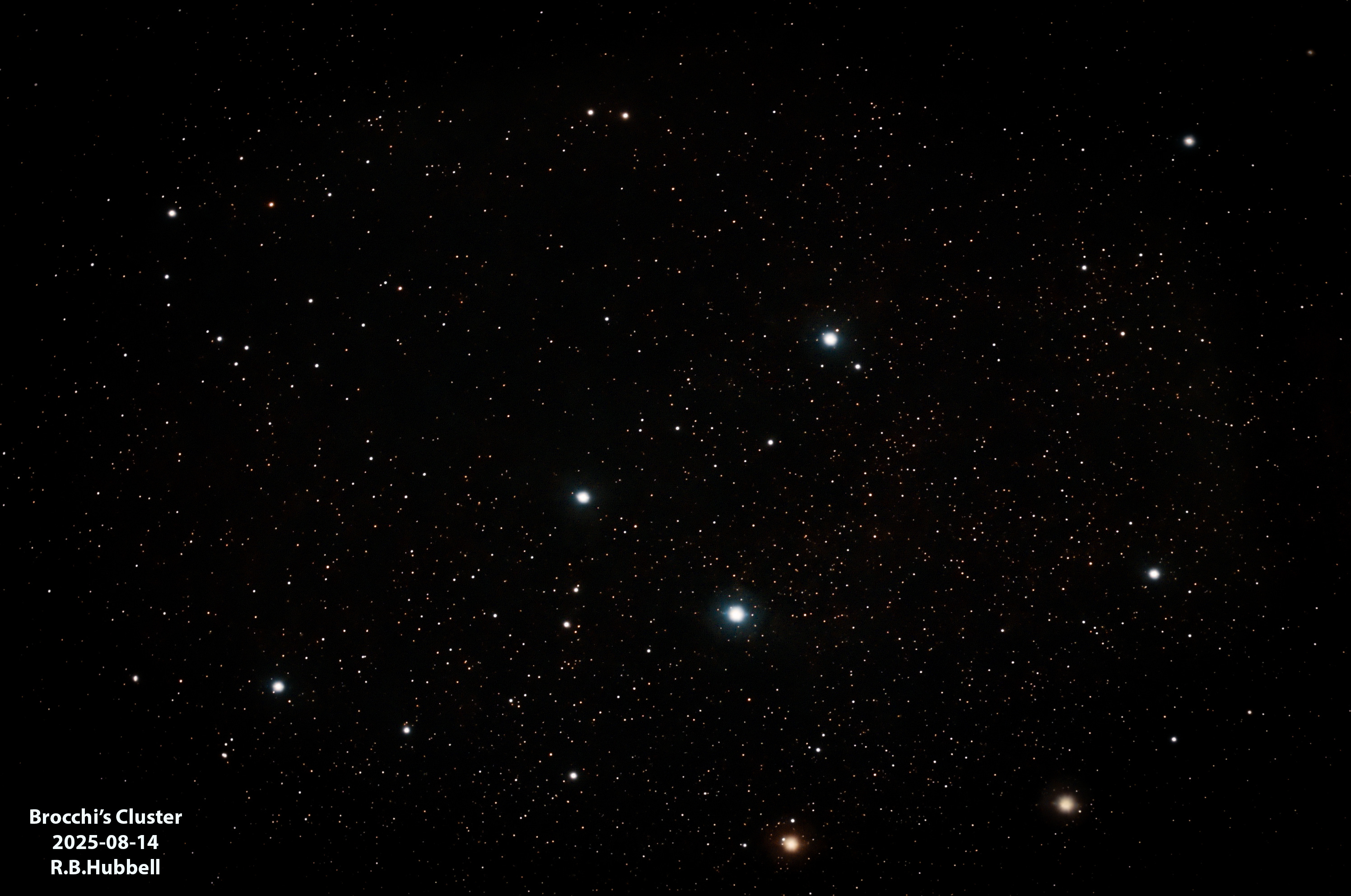 Brocchi’s Cluster, a collection of stars known as an “asterism.” Although the stars appear to be part of a gravitationally bound group, they are not. They merely align visually as observed from Earth. But beautiful, nonetheless.