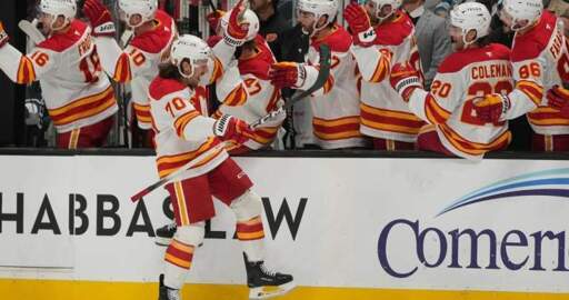 Ryan Lomberg’s exuberance took the spotlight Saturday when a single shift turned up the heat for the Calgary Flames in their win over Las Vegas Saturday night.