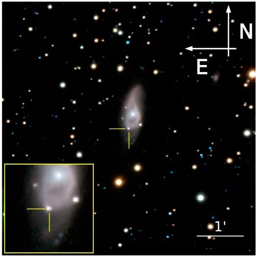 An international team of astronomers has conducted optical and near-infrared observations of a supernova designated SN 2022ngb. As a result, it was found that SN 2022ngb is a faint and slow-evolving Type IIb supernova with a low-mass envelope. The new findings were presented Dec. 10 on the arXiv preprint server.