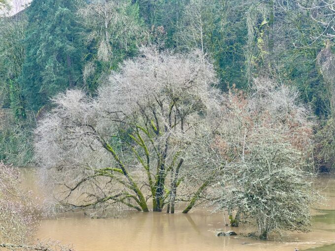 We knew it was going to be bad when the tree hit the house. There’d been nearly foot of rain in the last week. The ground was so saturated that the first blast of wind the front in a train of storms uprooted the willow I’d planted twenty years ago, toppling the 30-foot-tall tree. Fortunately for us, being a golden-leaved member of the Salix family the tree, a favorite foraging spot for sapsuckers and woodpeckers that was just beginning to provide cooling late summer shade from the afternoon sun, made a willowy landing and didn’t crash through a window or dent the gutter. The willows fall was a prelude to a coming deluge, the latest in a series of storms that had raked across the Pacific Northwest in December, warm storms cycling up from the tropical Pacific. Climate change? Consider the fact that for most of December, the temperature here 40 miles north of the 45th parallel of latitude, has been 15 degrees above normal. Consider that it’s been so warm, the ski slopes on Mt. Hood at Timberline (6,000 feet) have yet to open, the latest date in more than a century. Even though Oregon escaped the worst of the flooding, all three rivers that converge here in Oregon City–the Willamette, Tualitan, and Clackamas–rose out of their banks, enveloping roads, fields, and homes. The forecast calls for rain in nine of the next 10 days. The climate has changed and will keep changing, faster than we can adapt, even if we try, which we aren’t…