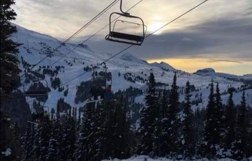 A skiier was taken to hospital in stable condition on Sunday after she fell off a chair lift at Sunshine Village Resort, near Banff.