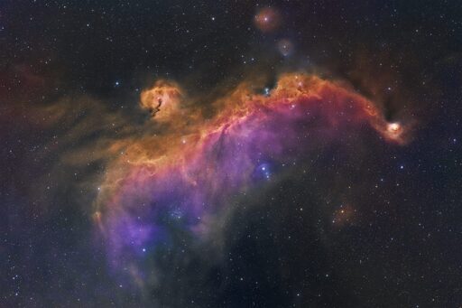 Charles Pevsner, taken from Rio Hurtado, Chile The Seagull Nebula is the suspected site of several past supernovae, which have blown gas and debris outward into broad arcs. It comprises emission nebula IC 2177 (the gull’s head) and part of Sharpless 2–296 (its wings). This imager took 33¾ hours of exposure with a 5-inch scopeContinue reading "Soaring free"