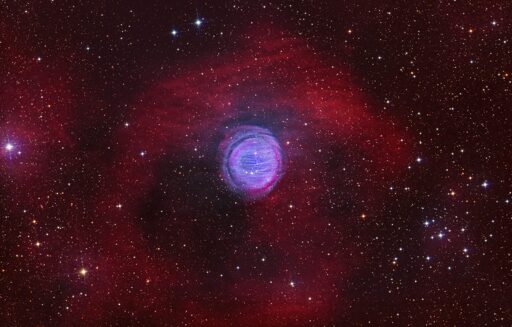 Dave Doctor from Las Cruces, New Mexico Sharpless 2–200 in Cassiopeia is a planetary nebula — the remains of a dying star blowing off its outer layers. The fine, wispy filaments in its interior give it its common nickname of the Bear Claw Nebula. This imager took 39 hours of Hα/OIII/RGB data with a 14-inchContinue reading "Winter hibernation"