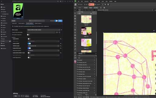 The bad: My muscle memory for InDesign shortcuts was completely ineffective for this, and there were occasional features of InDesign and Photoshop that I did not find direct equivalents for in Affinity. WINE’s file menus tend to look like old Windows, which might be a turn-off for UX purists, and required a bit of extra navigation to dig through folders. Also, one downside of WINE that I could not work past was that I couldn’t use my laptop’s Intel-based GPU for machine learning tasks, a known bug that I imagine slowed some things down on graphically intensive pages.
