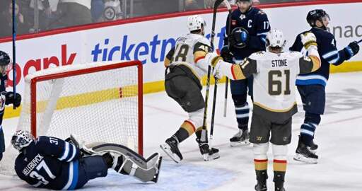 The Jets let a 2-0 lead slip away before Vegas scored on an OT power play in a game overshadowed by Haydn Fleury leaving on a stretcher.
