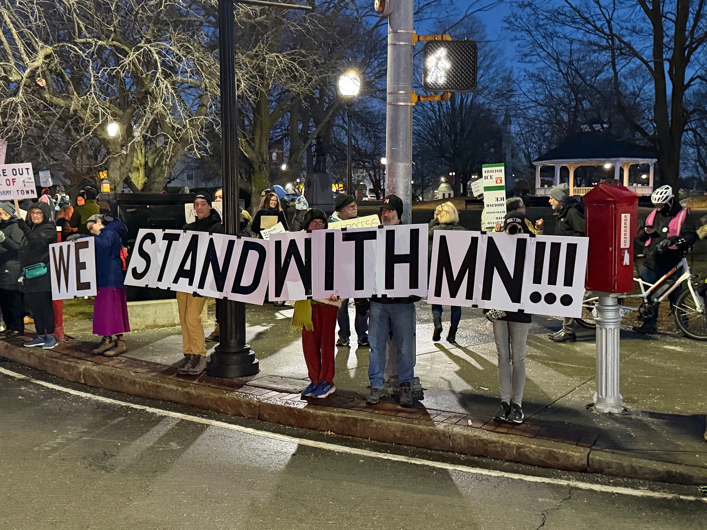 A few snaps from two spirited protests on the village green in fair Montague, MA, on 8 January 2026.
