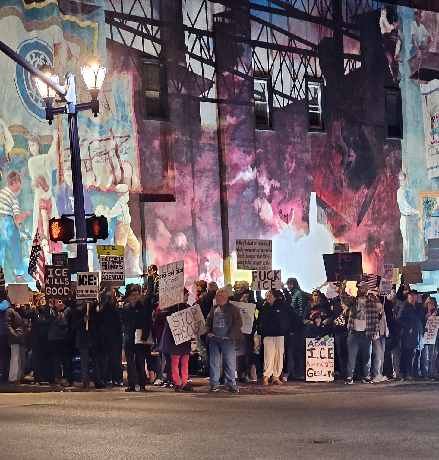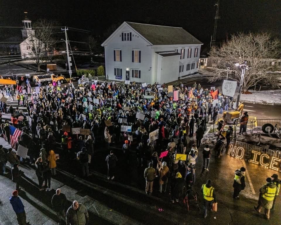 1/8/26 NH: The first is from Lebanon, about 25 people. The next ones are outside of the Merrimack Town Council meeting. The Town was recently ambushed to discover that ICE plans to use a vacant warehouse as a people-holding depot.