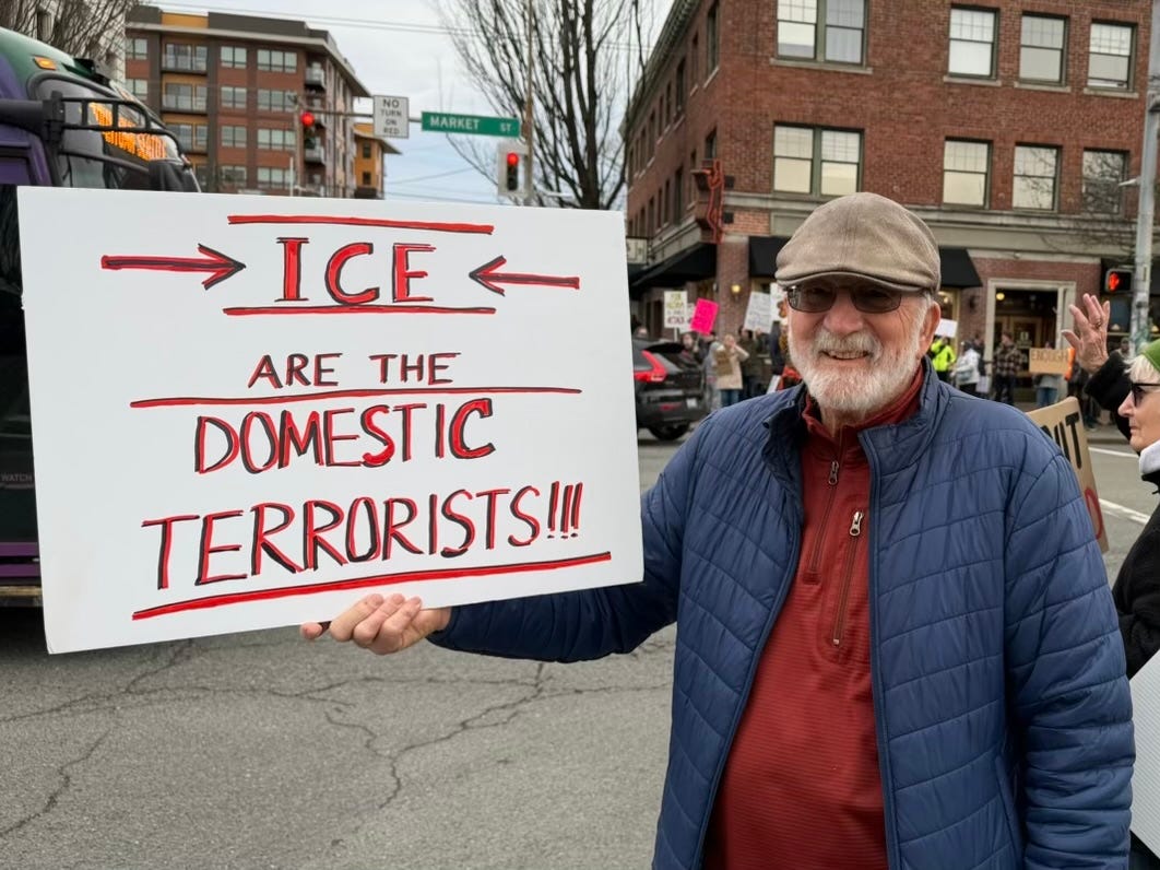 Per my regular publication schedule, I am sending a short note to open the Comment section. This edition is devoted to Ice Out for Good protest photos from Saturday, January 10.