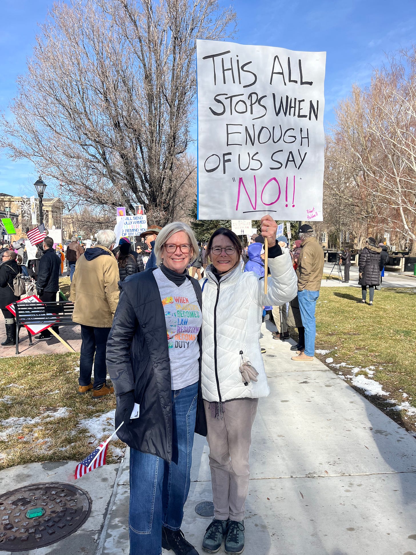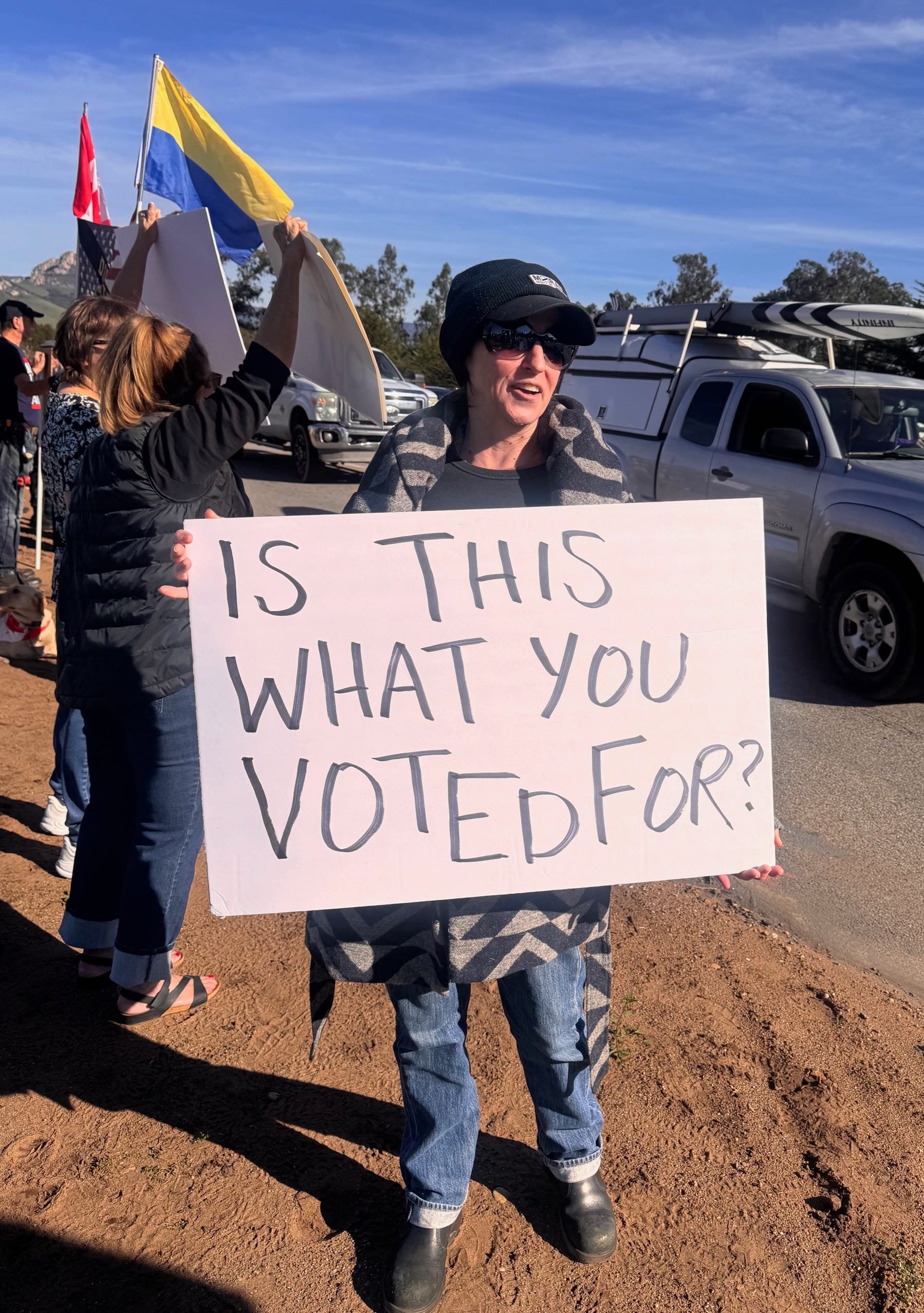 Thanks to everyone who protested—in person or in spirit—on Saturday. If you can, join a protest on Sunday. I will be speaking in the San Luis Obispo area and will try to record my remarks for publication on Sunday evening.