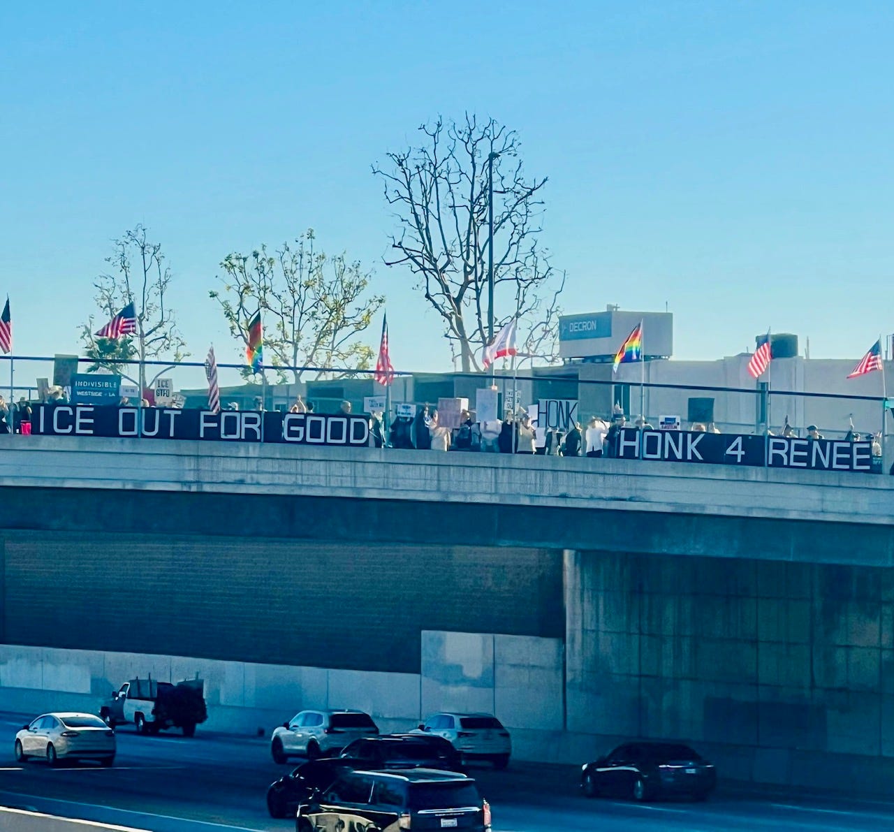 Just had to tell you we had almost 200 people at our #ICEOutForGood freeway brigade today! It was incredible. I didn’t know I could feel joy again… but today was joyous. The people were LOUD. They showed up for Renee Nicole Good.