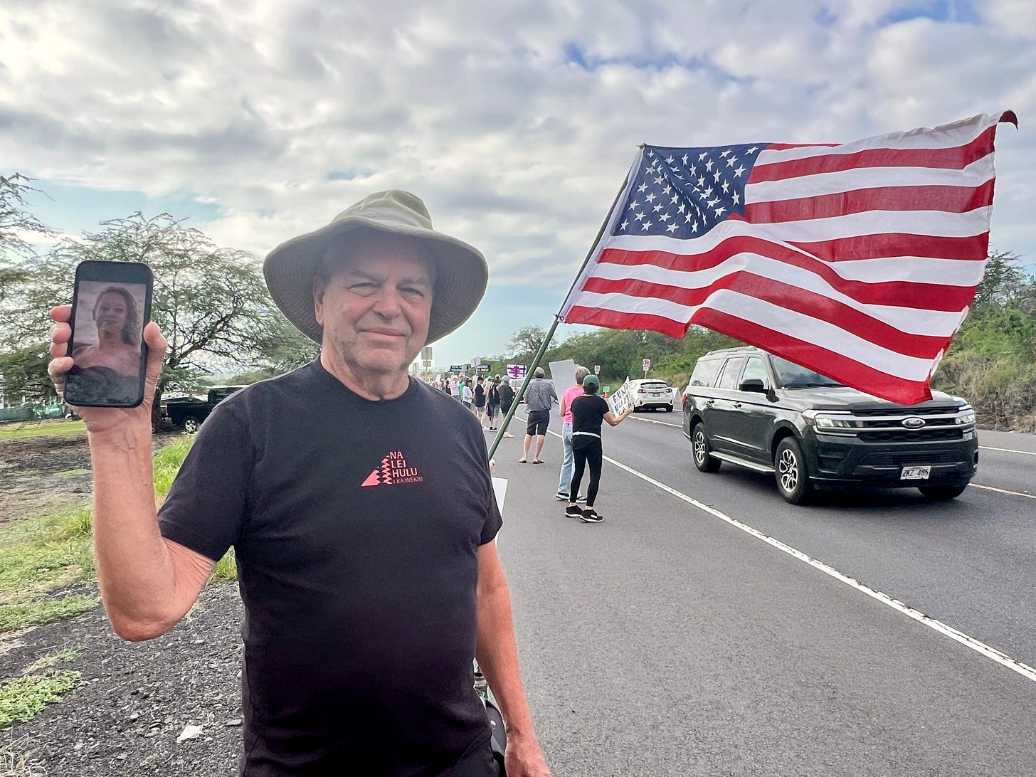We are here on Big Island for a few days…head of a pop-up protest organized by Indivisible…so off we went…didn’t have sign makings but we had a photo of Renee Good on our phones and the response was quite incredible…thumbs up and tears…About 200+ people along the highway…VERY enthusiastic honking…