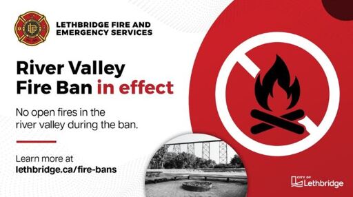 A fire in the Lethbridge River Valley early Tuesday morning, combined with unseasonably warm temperatures and gusty winds, has prompted the city to put a fire ban in place.
