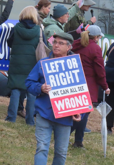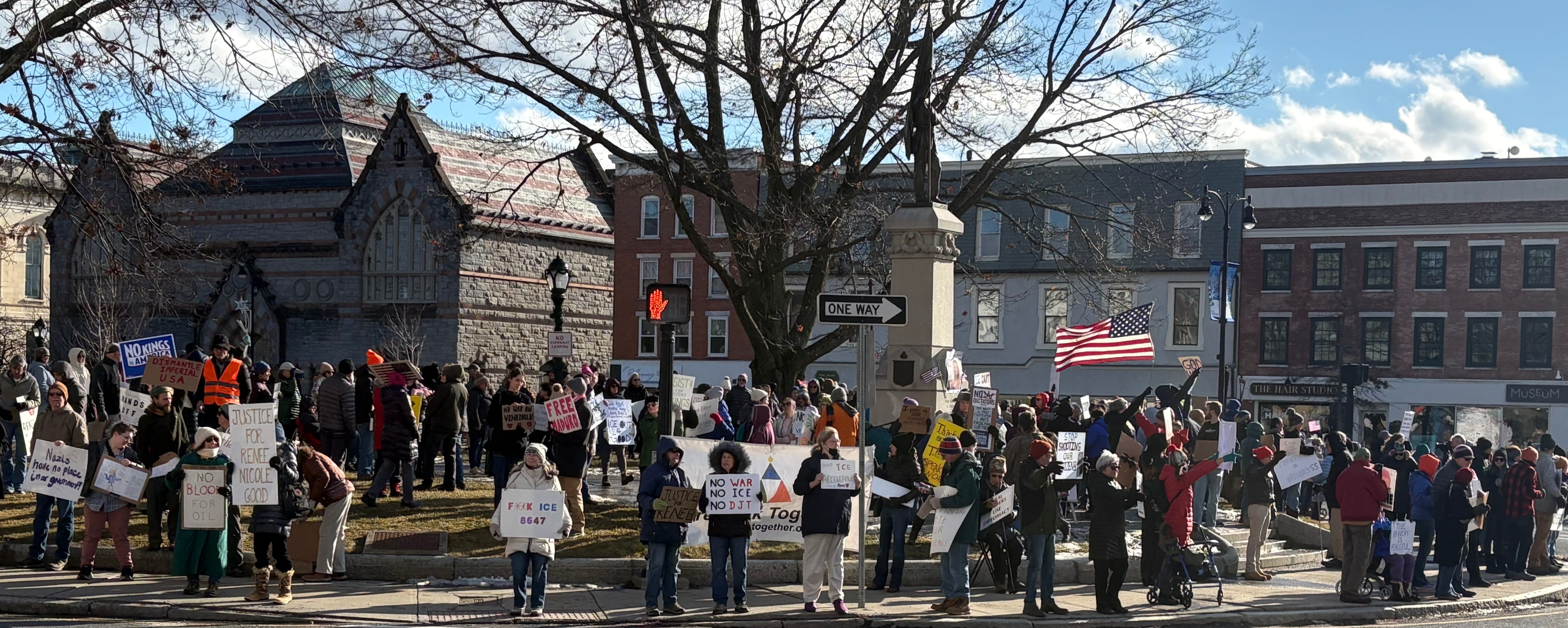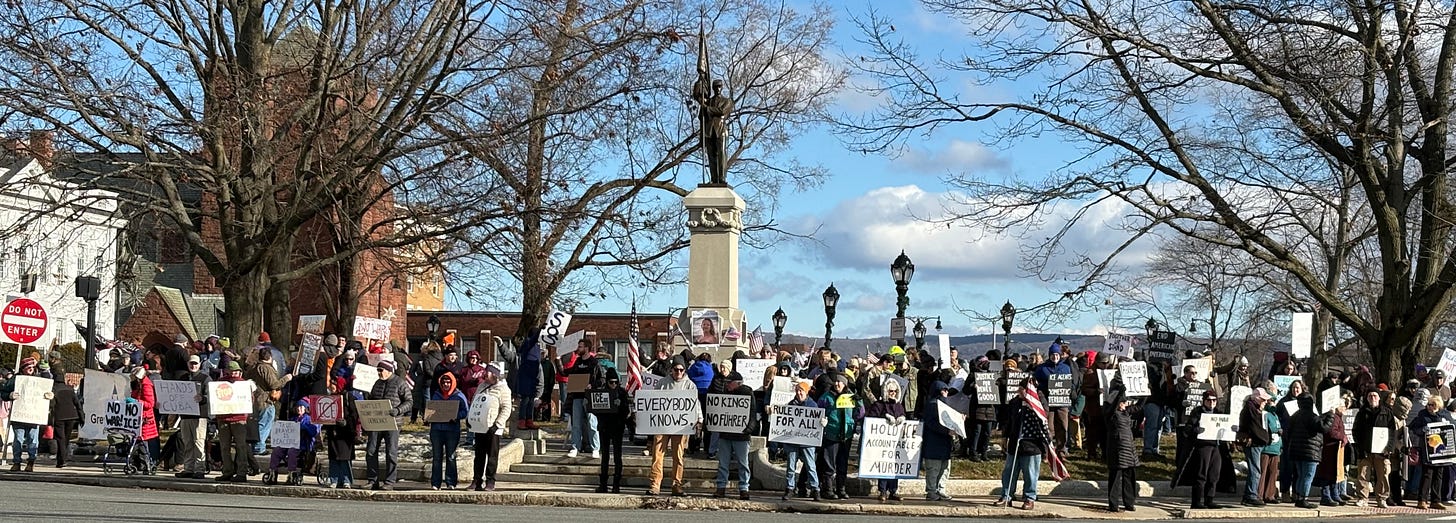 Pittsfield, MA, protest organized by Stand Up, Berkshires, local Indivisible groups, and Greyrock Together. Organizers said that more than 400 attended on a clear but chilly day in the heart of the Berkshires. I wasn’t able to get a picture of the best sign I saw, which said, “What crimes get you deported and which crimes get you elected president? I’m so confused.”