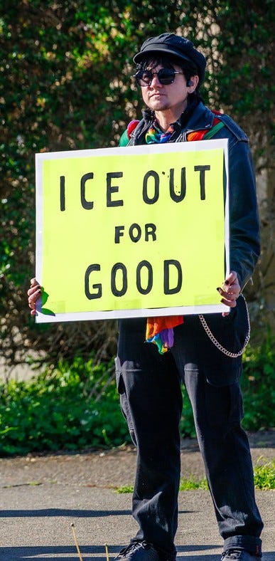 Here are a few Robert Dominy photos from our large ICE Out For Good protest - we had well over 3X the usual weekly protest folks. Very energetic and determined.