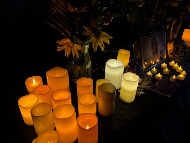 Here’s one I took in El Cerrito, CA, of the altar for Renee and all who have died at the hands of ICE over the last year. The person who organized the vigil read each name, and we all responded, “Taken too soon.”