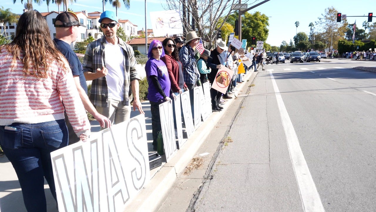 A small but mighty crowd protested in Los Feliz yesterday. The percentage of supportive honking cars has always been solid at our protests, but it was definitely at its peak yesterday.