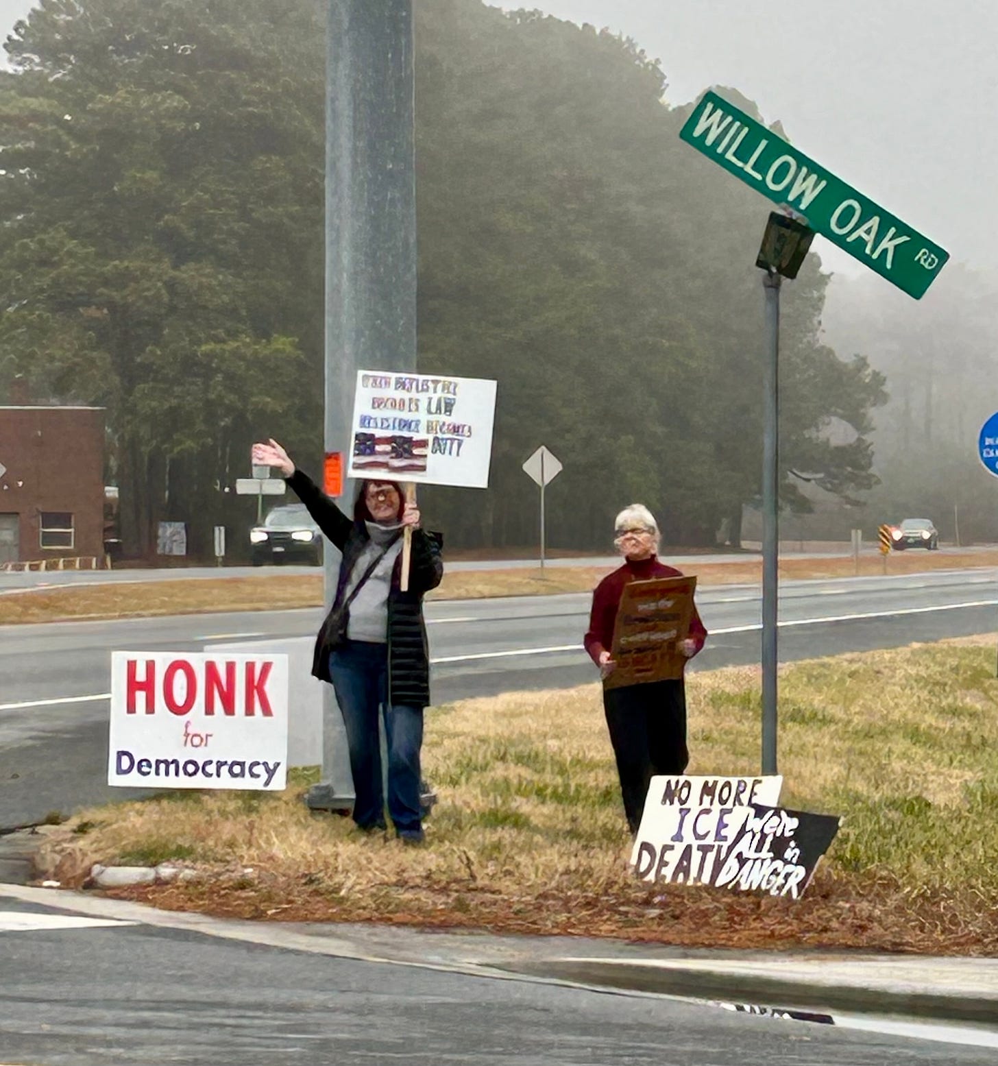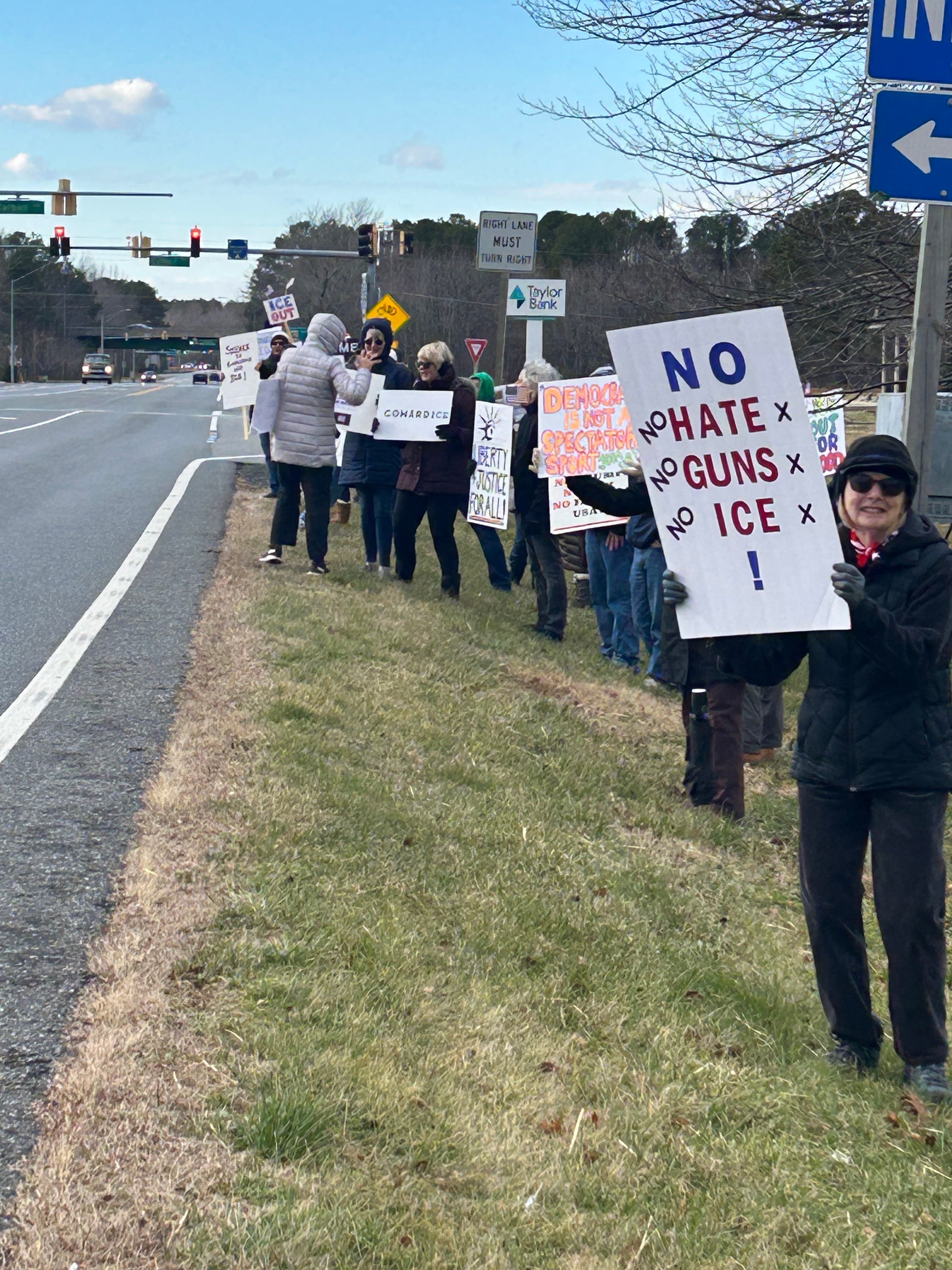 January 10 and 11 protests at Eastville, Virginia, traffic light, on Virginia’s Eastern Shore. Saturday, we had 415 honks of encouragement in an hour. Thank you for continuing to motivate me and others.