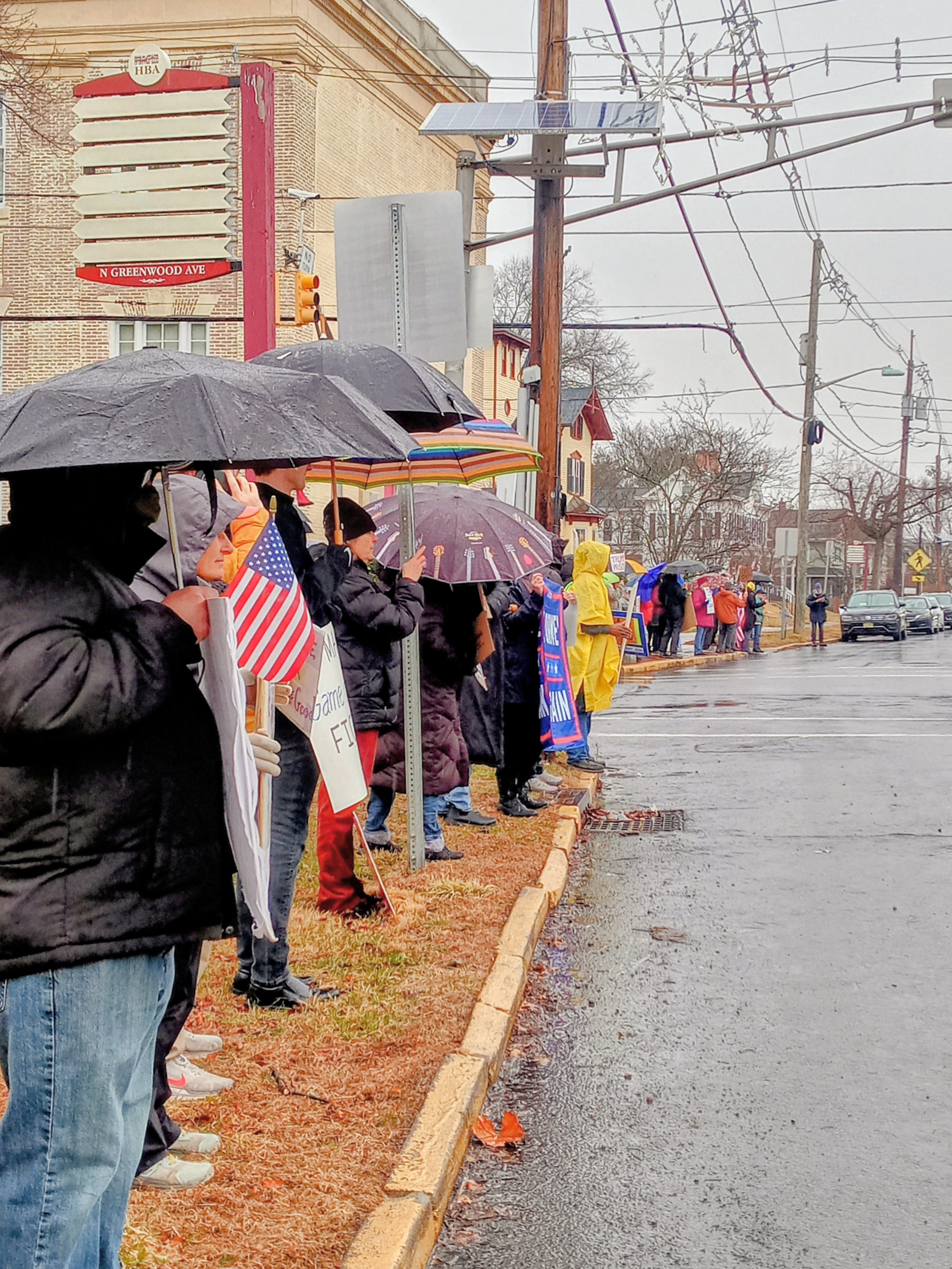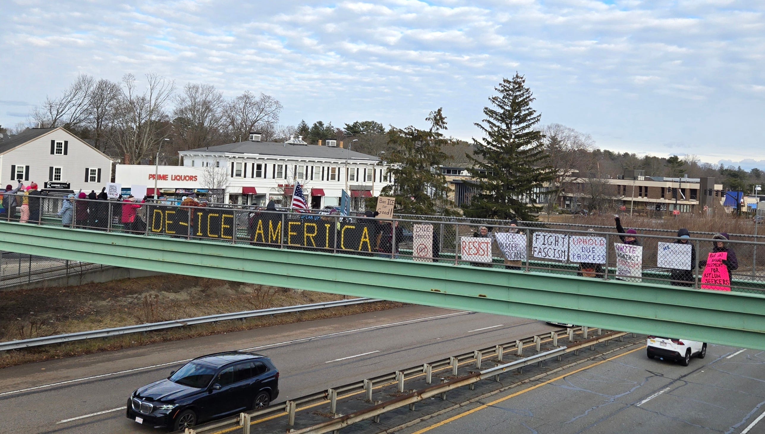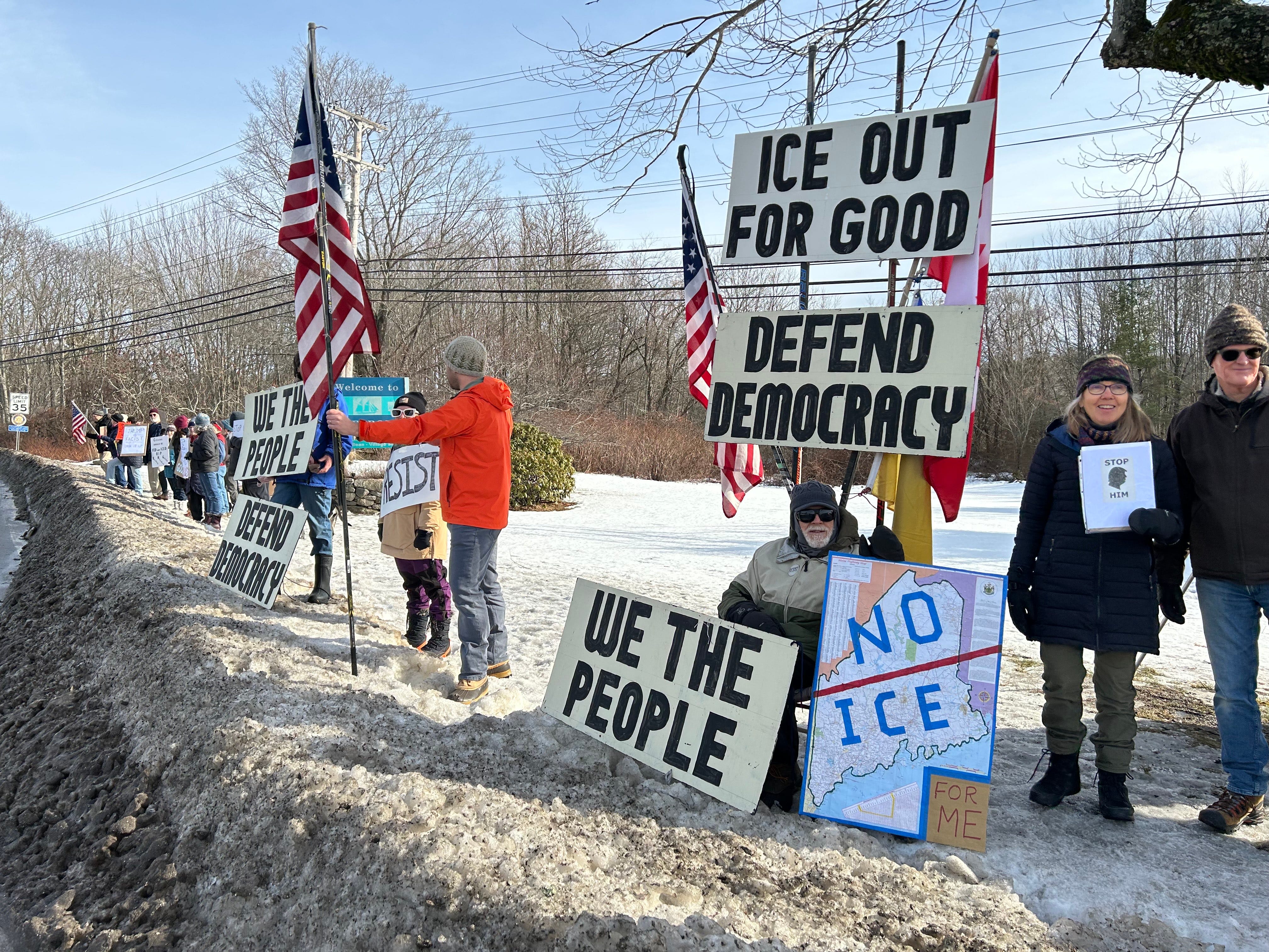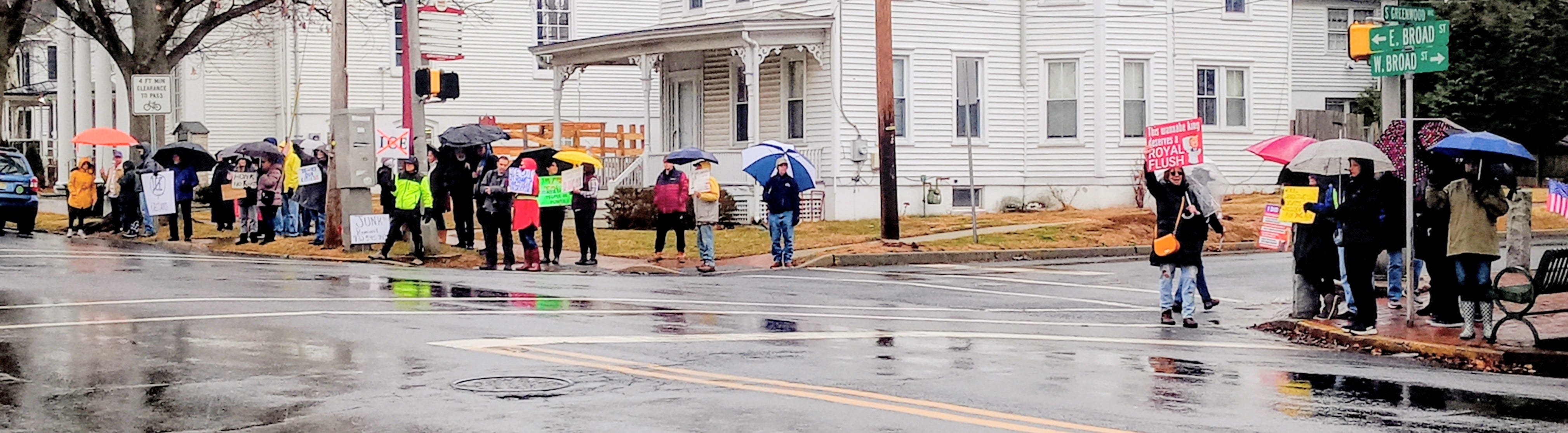 Vineyard Haven, Martha’s Vineyard, Massachusetts, January 10. About 50 people showed up and stood in the rain for an hour. Consistently positive support from passing motorists.