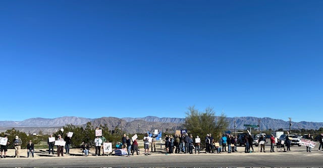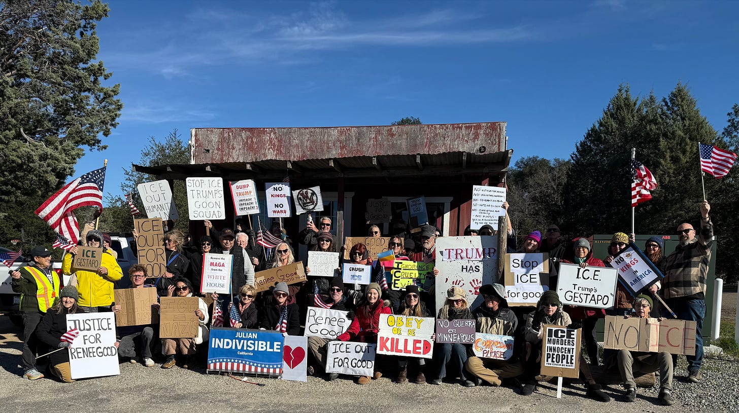 Julian Indivisible with our 200 members had a record turnout of 40 people yesterday for our weekly rally. Even though we had 45 mile an hour gusts of wind to stand in, we were there!