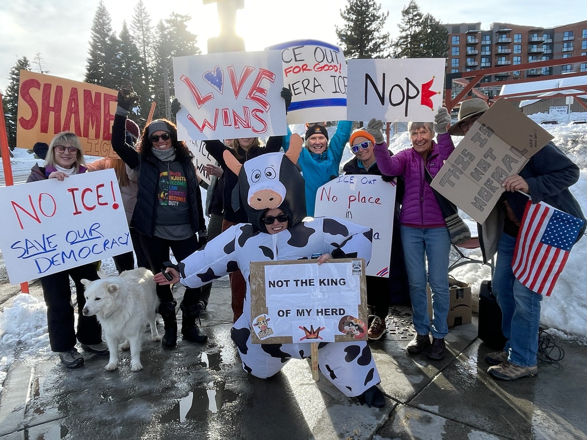 There were about 12 people at a small but mighty Ice Out for Good protest in 30-degree weather in Mammoth, CA. I was honored to be there and be part of the group.