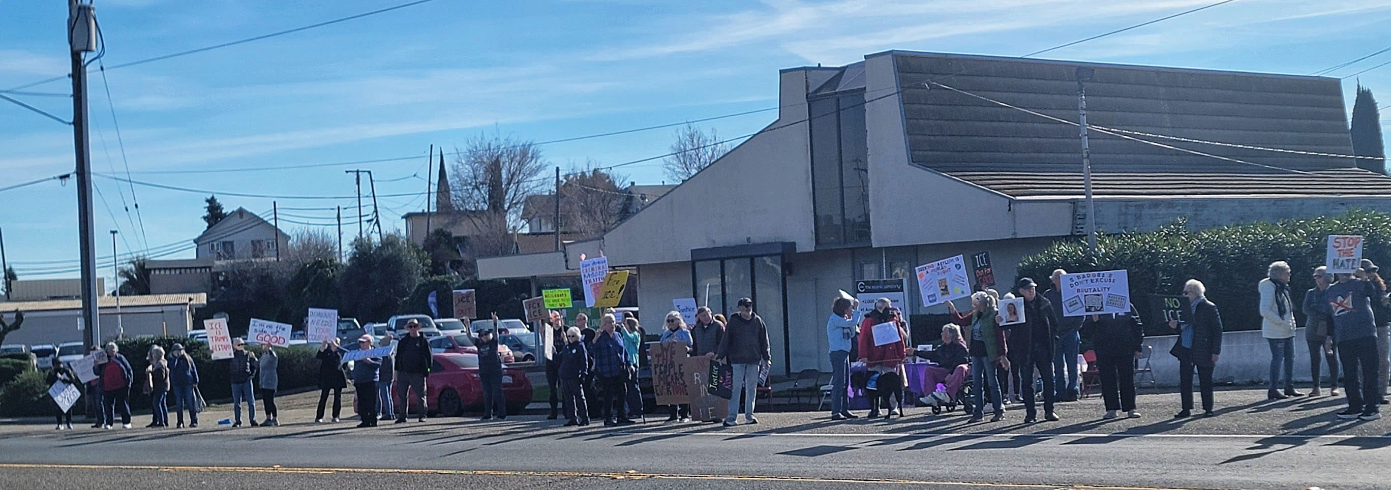 On 2 days’ notice in Rio Vista, CA (pop. 10K), over 100 people showed up for the ICE Out For Good protest. A brief vigil was held prior to the protest.