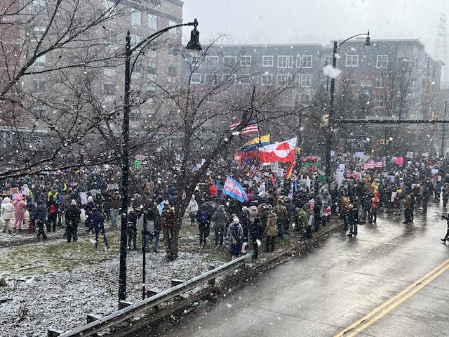 We had a good turnout for the Ice Out for Good rally in Pittsburgh, Pa. Themarch past the DHS/ICE office was done in silence in memory of Renee Good.