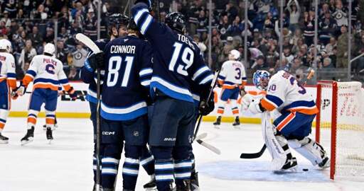 The two teams combined to score seven times in the second period with Adam Lowry’s fourth of the season holding up as the game-winning goal.