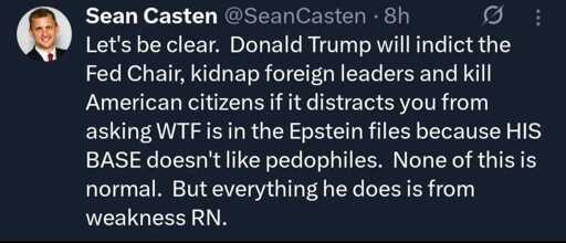 rssMB to FarkEnglish · 3 days agoOne Epstein child survivor's story. They went on to serve in Iraq. Jim Jordan, Clarence Thomas, an Arizona senator, Trump, Epstein and many, many more. NSFW or any future sanity. Harrowing and...substack.comexternal-linkmessage-square0linkfedilinkarrow-up12arrow-down10file-text