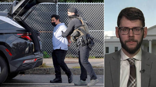A new report finds the number of people in ICE detention has nearly doubled in Trump’s first year back in office, driven by indiscriminate arrest policies that have locked up more and more people without criminal records, “an unprecedented situation for immigration detention.” We break down the numbers with Aaron Reichlin-Melnick, a senior fellow at the American Immigration Council, which published the report. Reichlin-Melnick explains that ICE’s annual budget has approximately quintupled, even as 2025 marked the agency’s deadliest year so far. Four more people have already died in detention in just the first two weeks of 2026. “Crucially, all of this has been slower than they wanted,” he adds. “Their hope was to have over 100,000 people in detention by today; they’ve hit 70,000.”