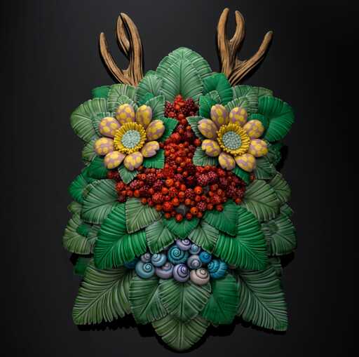 By disturbing the boundaries between cuteness and abjection and the playful and unsettling, the artist invokes the power of imagination and the enigmatic atmosphere of fairytales. Her ongoing Trolls series combines natural objects like snail shells, eggs, leaves, and flowers into sage mysterious faces that give little indication of whether they’re well-meaning or not.