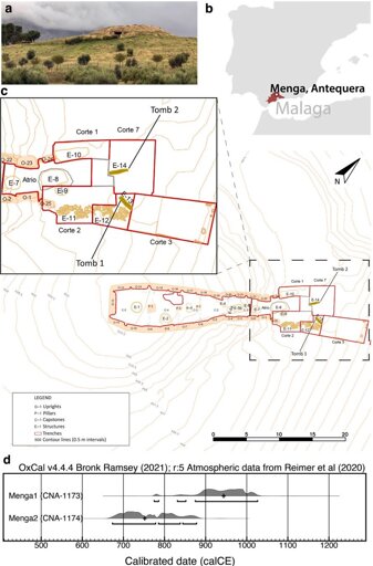 The Menga dolmen in Antequera, Spain, is a Neolithic monument and part of a UNESCO World Heritage site. The monument, built in the fourth millennium BCE, has seen continued use for burials and rituals through the Bronze Age, Iron Age, Antiquity, and medieval times.