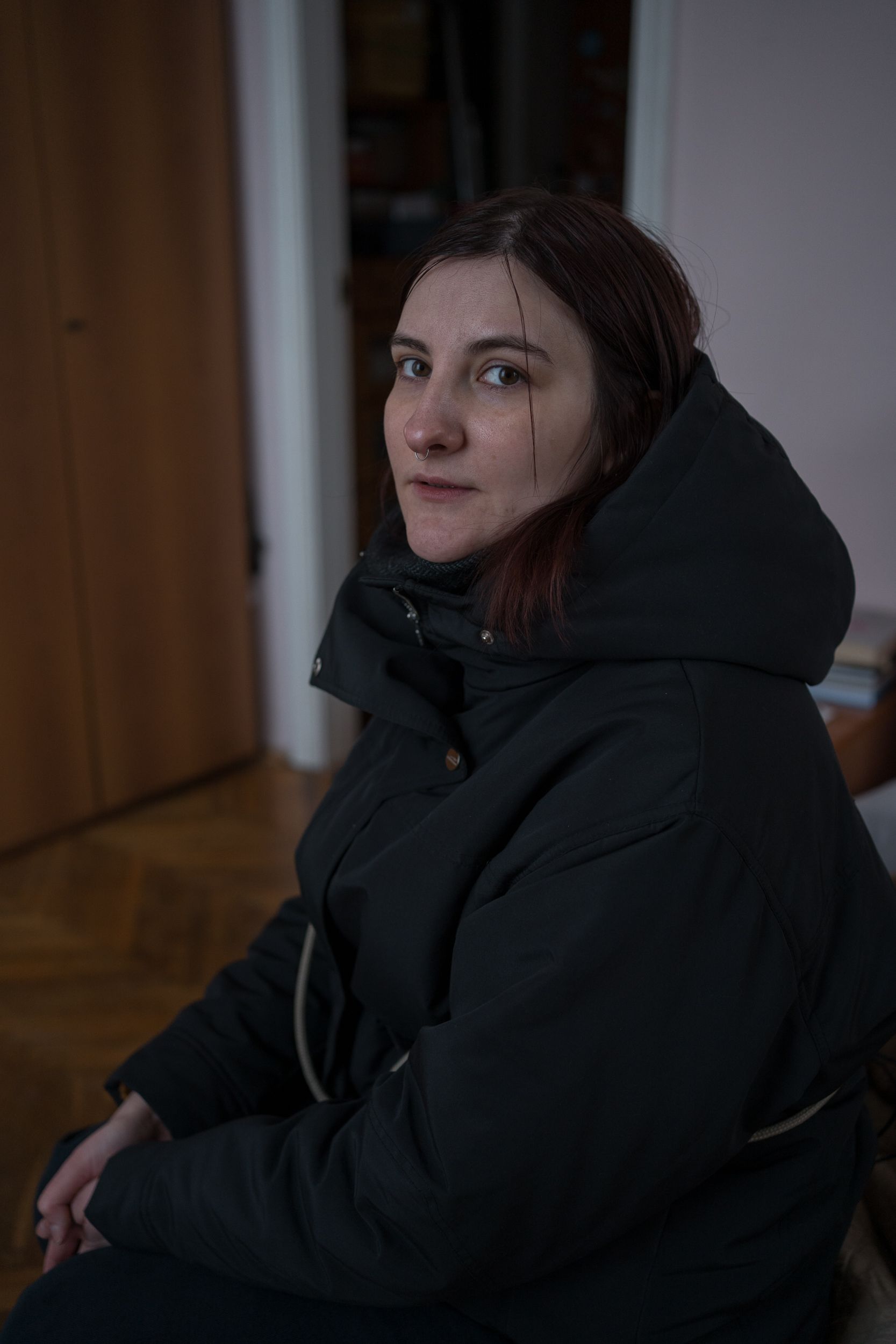 Anna Diachenko is seen in her apartment in Kyiv, Ukraine, on Jan. 13, 2026. (Elena Kalinichenko / The Kyiv Independent)