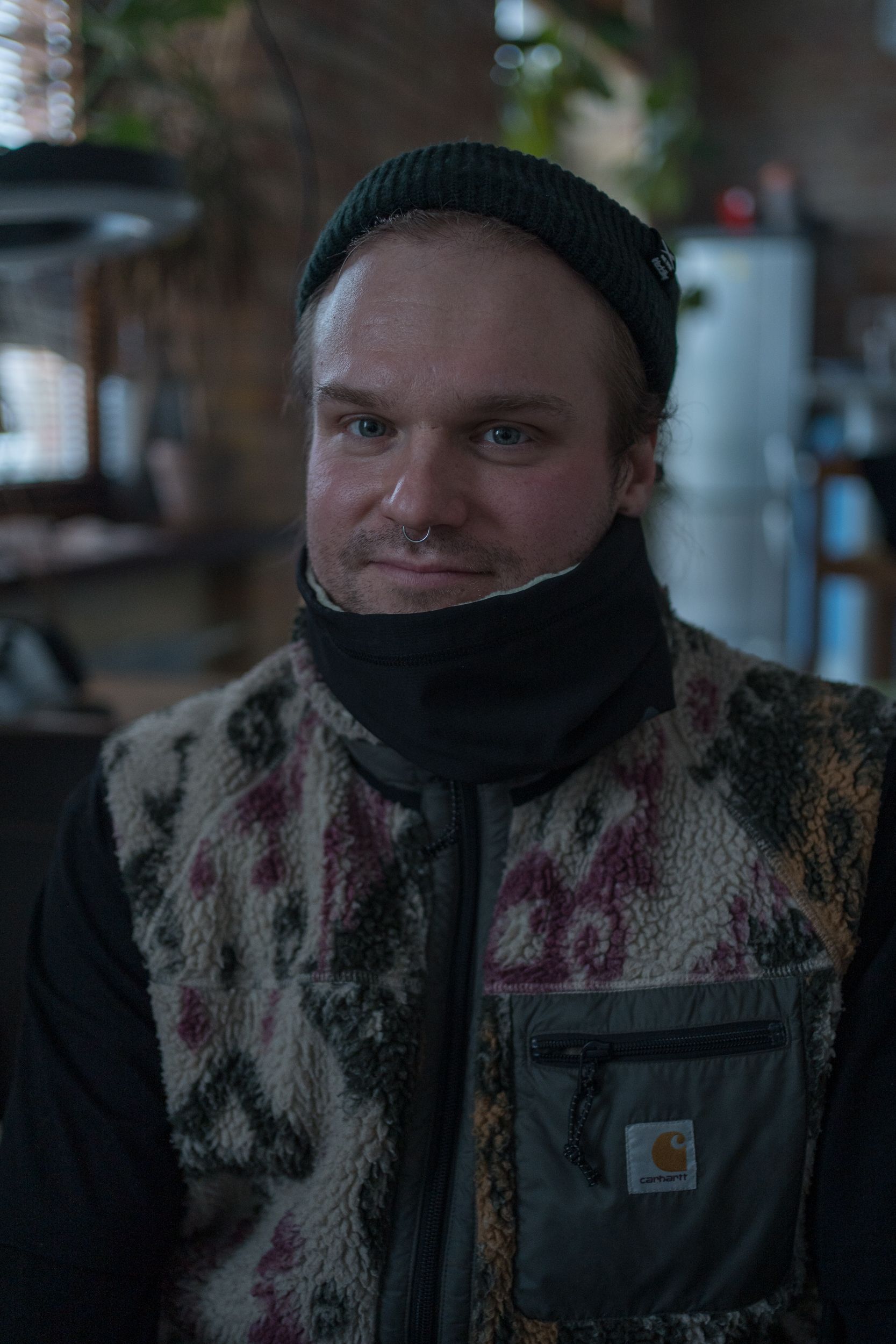 At night, he sleeps at his father’s house outside the city. The only things still “living” in his apartment are his plants — two tall ficuses, a monstera, a banana plant, and some others — all in winter dormancy.