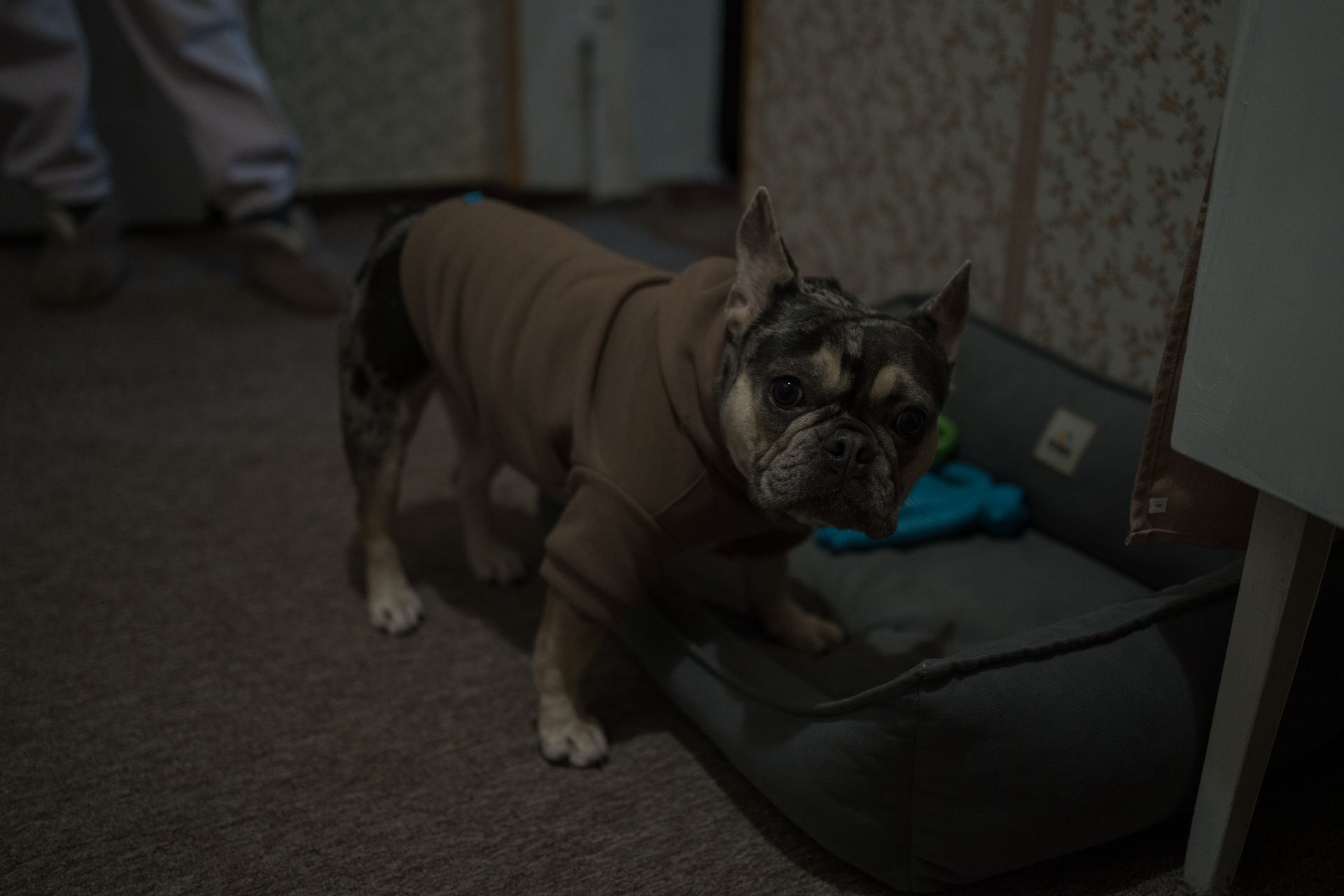 Roza herself is freezing too. She wears dog clothes around the apartment and sleeps at night between Olena and her partner.