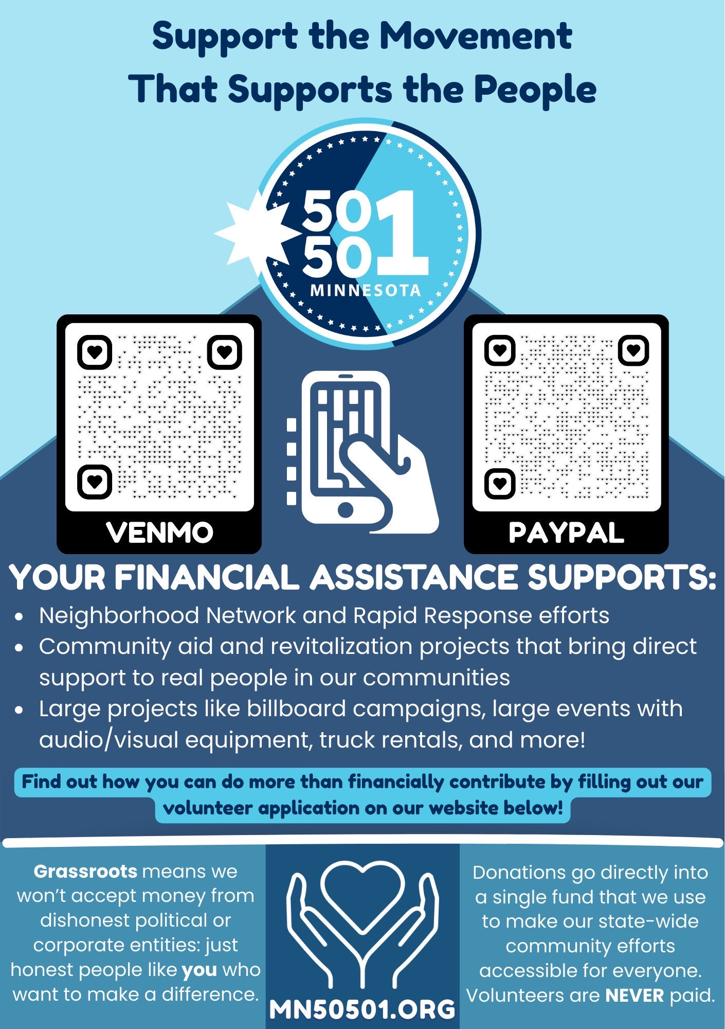 Now the donation link: I’m being told that another good place to give in MN right now is 50501 Minnesota. I am in touch with one of the organizers and they assure me that all donations are being used to help community members respond to ICE attacks. You can donate here via either Paypal or Venmo.