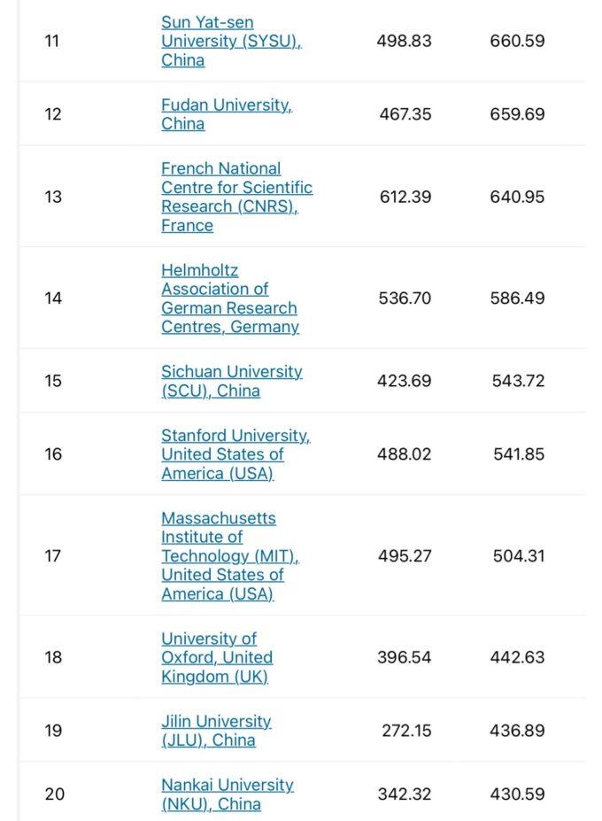 Nature’s annual ranking of universities in the fields of applied sciences and scientific research shows China enjoying whole spectrum dominance in the field, with 13 of the top 20 institutions…