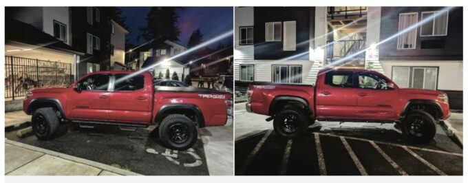 Photos of the red Toyota Tacoma taken by the FBI after the shooting of Moncada and Contreras.