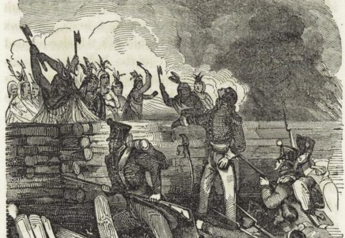 U.S. troops storm the breastworks at Horseshoe Bend – Public Domain