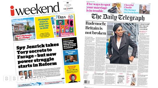 arrow-up11arrow-down1external-linkThe Papers: 'Spy Jenrick' and 'Badenoch says Britain not broken'www.bbc.comrssMB to BBCEnglish · 18 hours agomessage-square0linkfedilinkfile-text