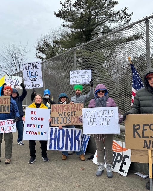 Hyannis Airport Rotary, Cape Cod, MA, protest today- 1/17/26