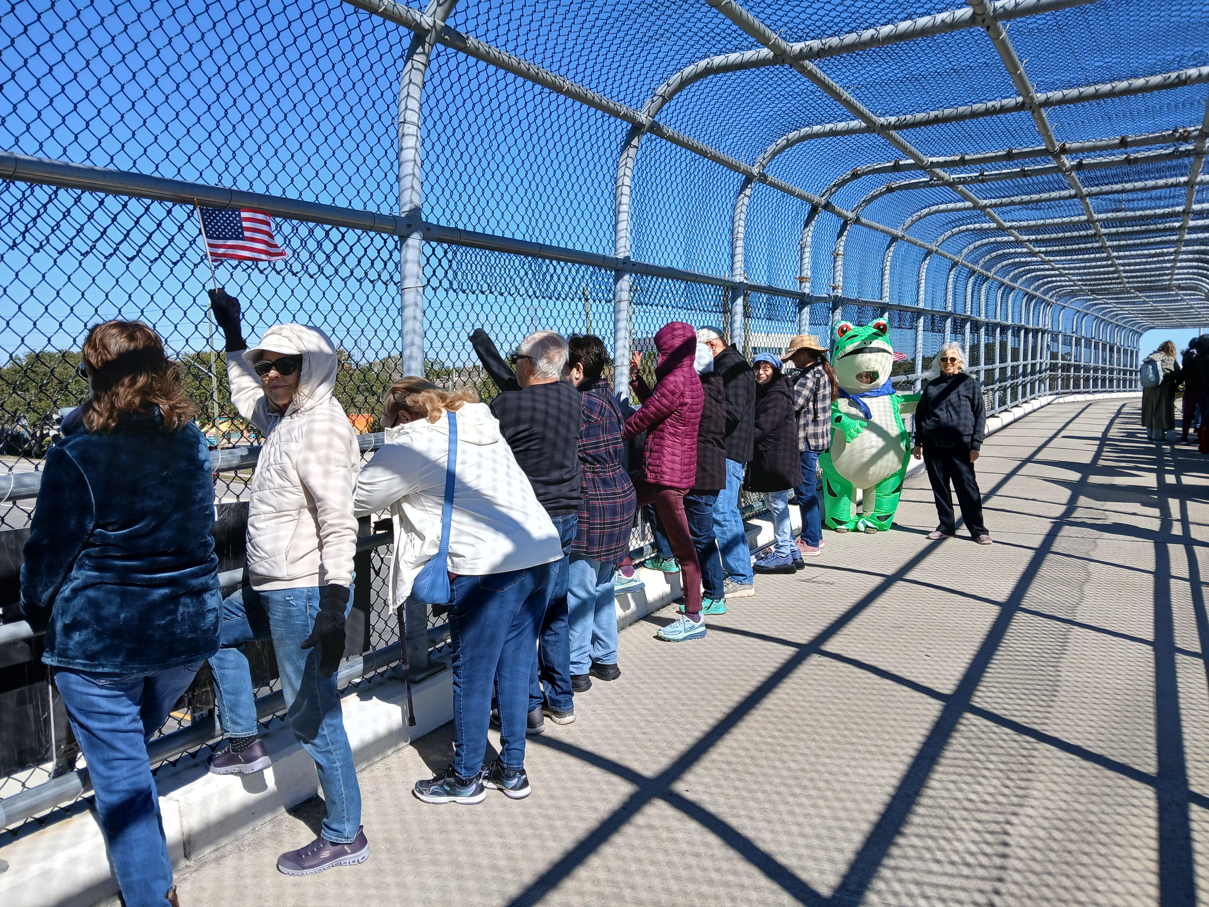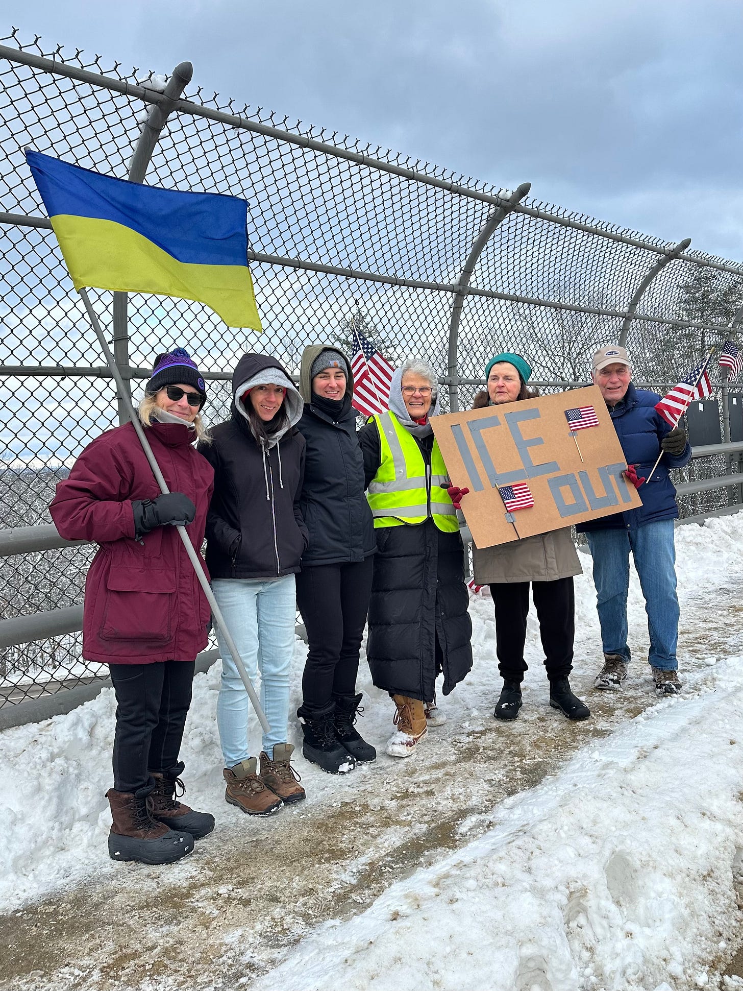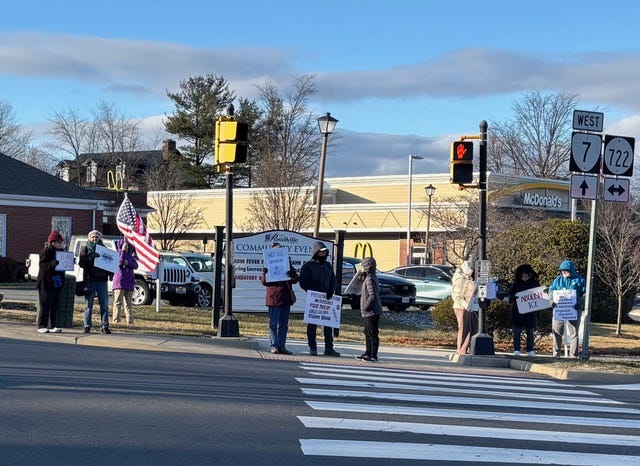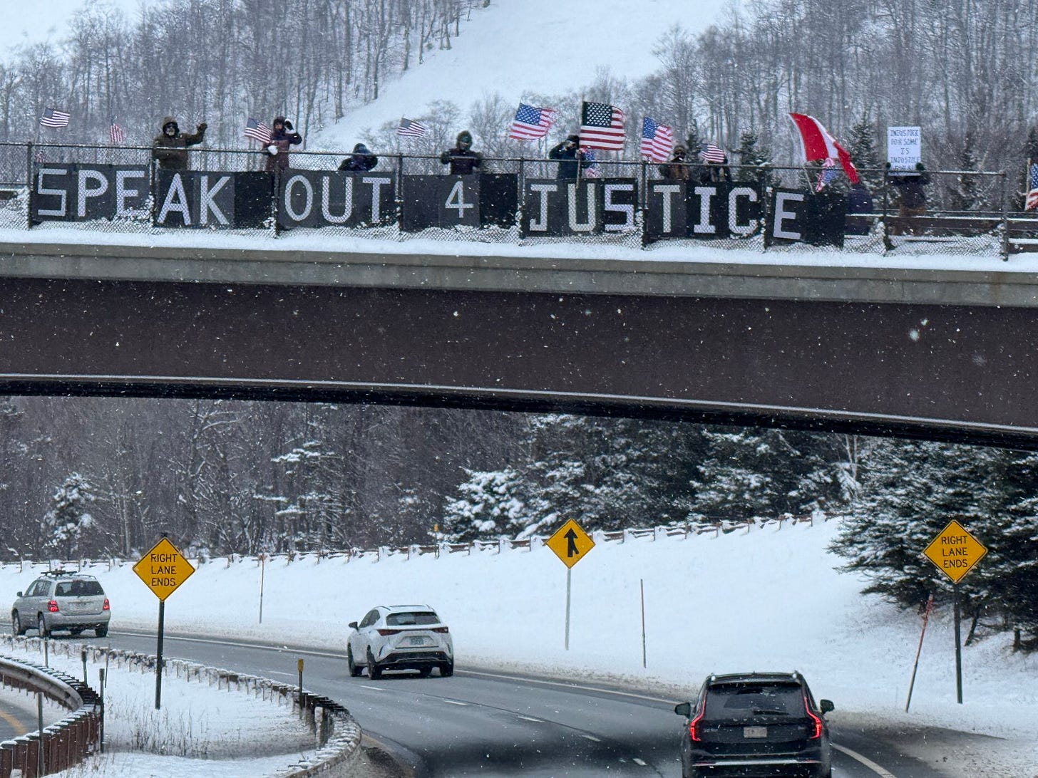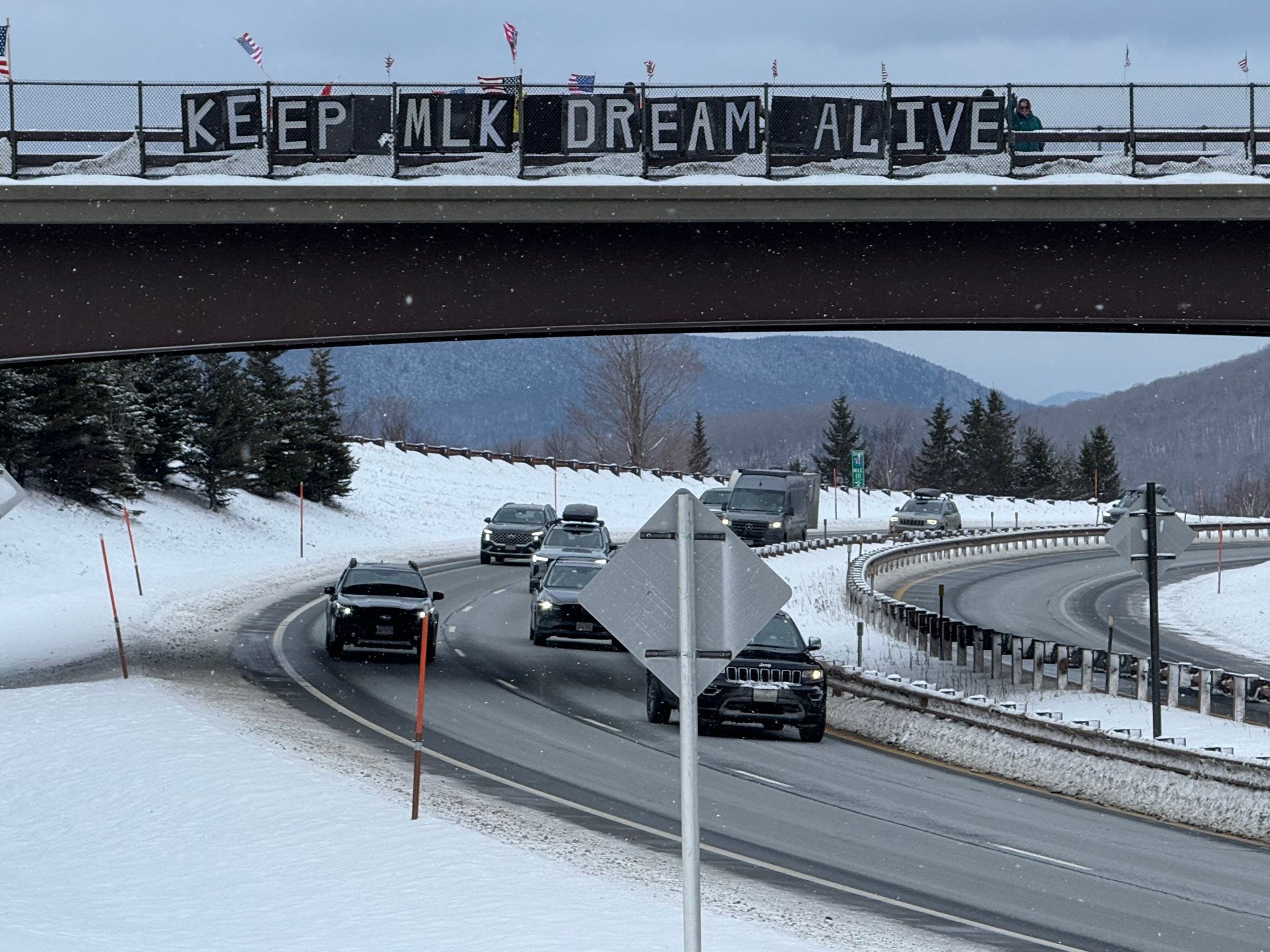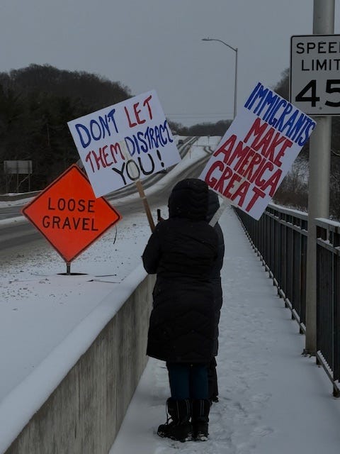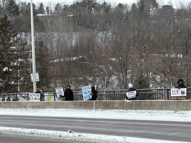 Bow, New Hampshire, Members of the NH Bridge Brigade on bridge above Routes 89 and 93 South, Monday, January 19, 2026