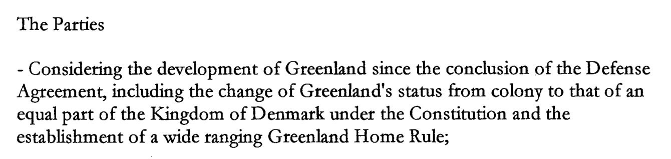 The PDF version of the agreement between the US and Denmark (linked above) says, in part,