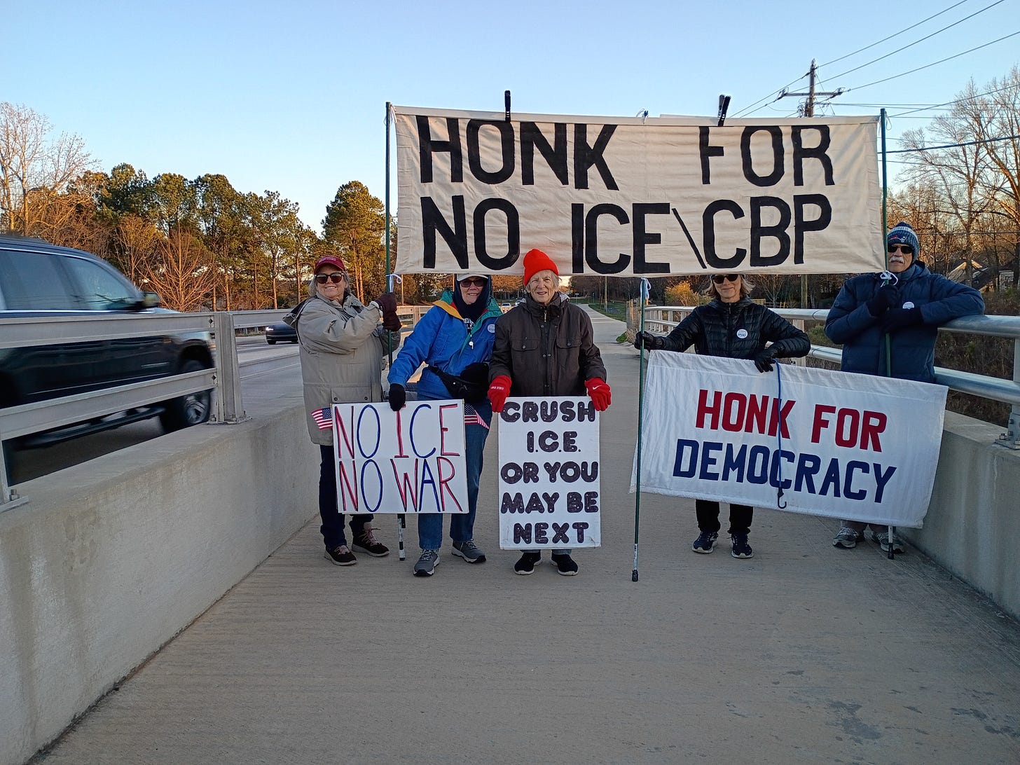 Friday afternoon bridge protest in Charlotte, NC.