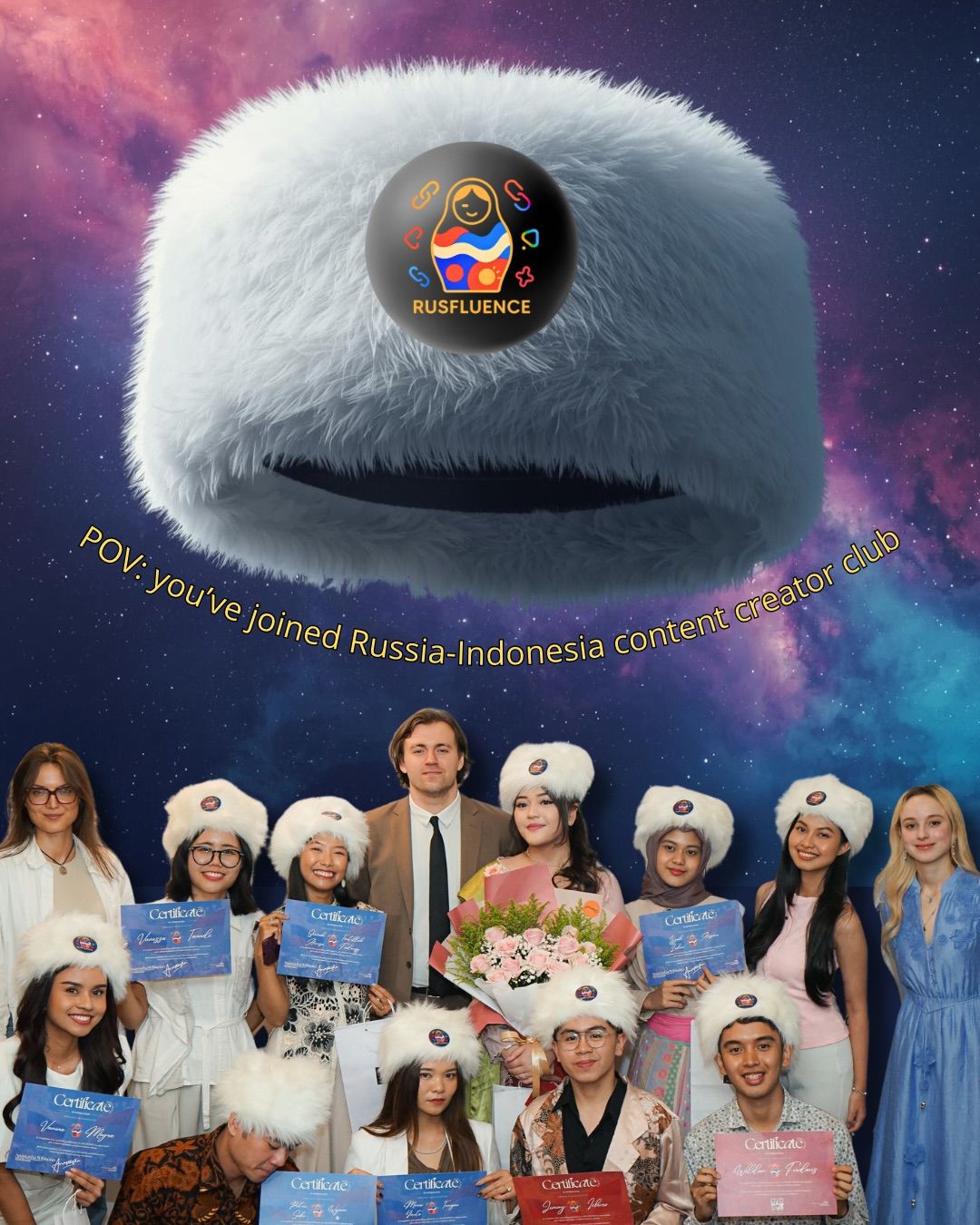 Members of Rusfluence, a Russia–Indonesia Influencer Club, pose for a photo at an event at the Russian House in Jakarta, Indonesia, in a post shared on Oct. 17, 2025. (Ihza Fauzan Hamizan, Rusfluence / Instagram)
