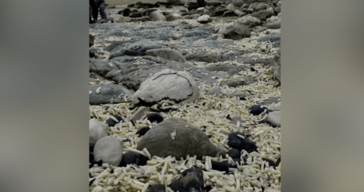 Thousands of bags of French fries washed up on a beach near a southern coastal town after a shipping container carrying food packages washed ashore.