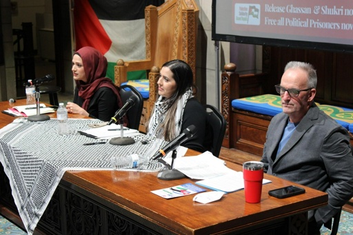 Palestine solidarity activists in Grand Rapids were honored to have Nida Abu Baker speak on her own activism and the struggle to free her father and his colleagues from prison. She was joined by Zena Ozier, an activist-lawyer with the US Palestinian Community Network (USPCN), and Tom Burke, a member of the Anti-war 23 and labor leader, for a panel discussion featuring the story of the Holy Land 5 and the struggle of political prisoners at home and in Palestine.