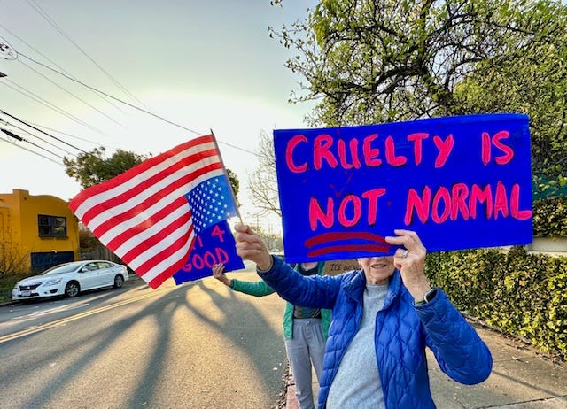 But we must not relent. Every escalation by Trump is a sign of increasing weakness and desperation. When he goes low, we must get bigger and louder. When Americans are engaged in mass rallies in hundreds of cities across America, there won’t be enough ICE agents to “surge” into other cities.