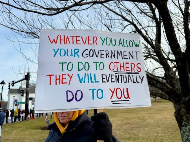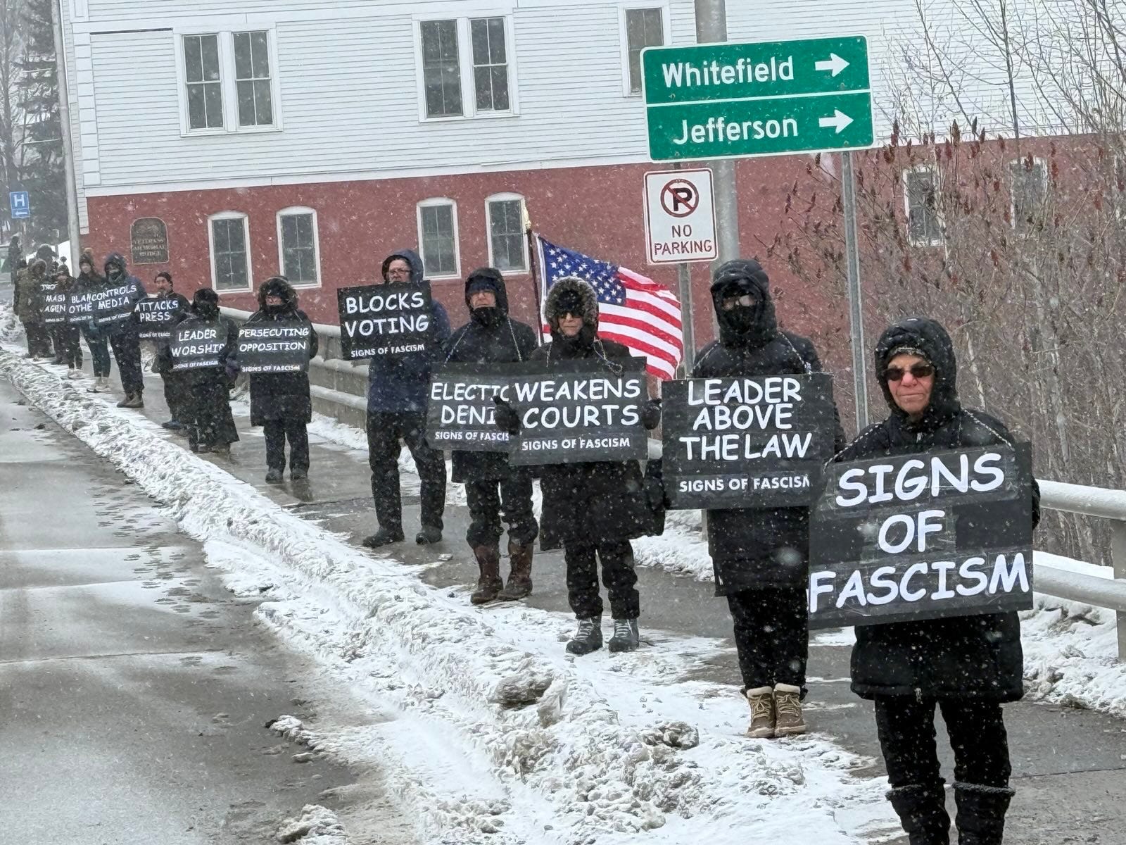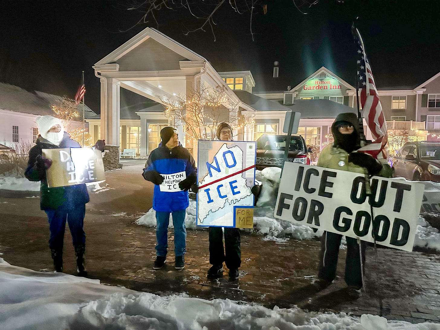 Freeport, Maine Visibility Brigade protest outside of Hilton Garden Inn: